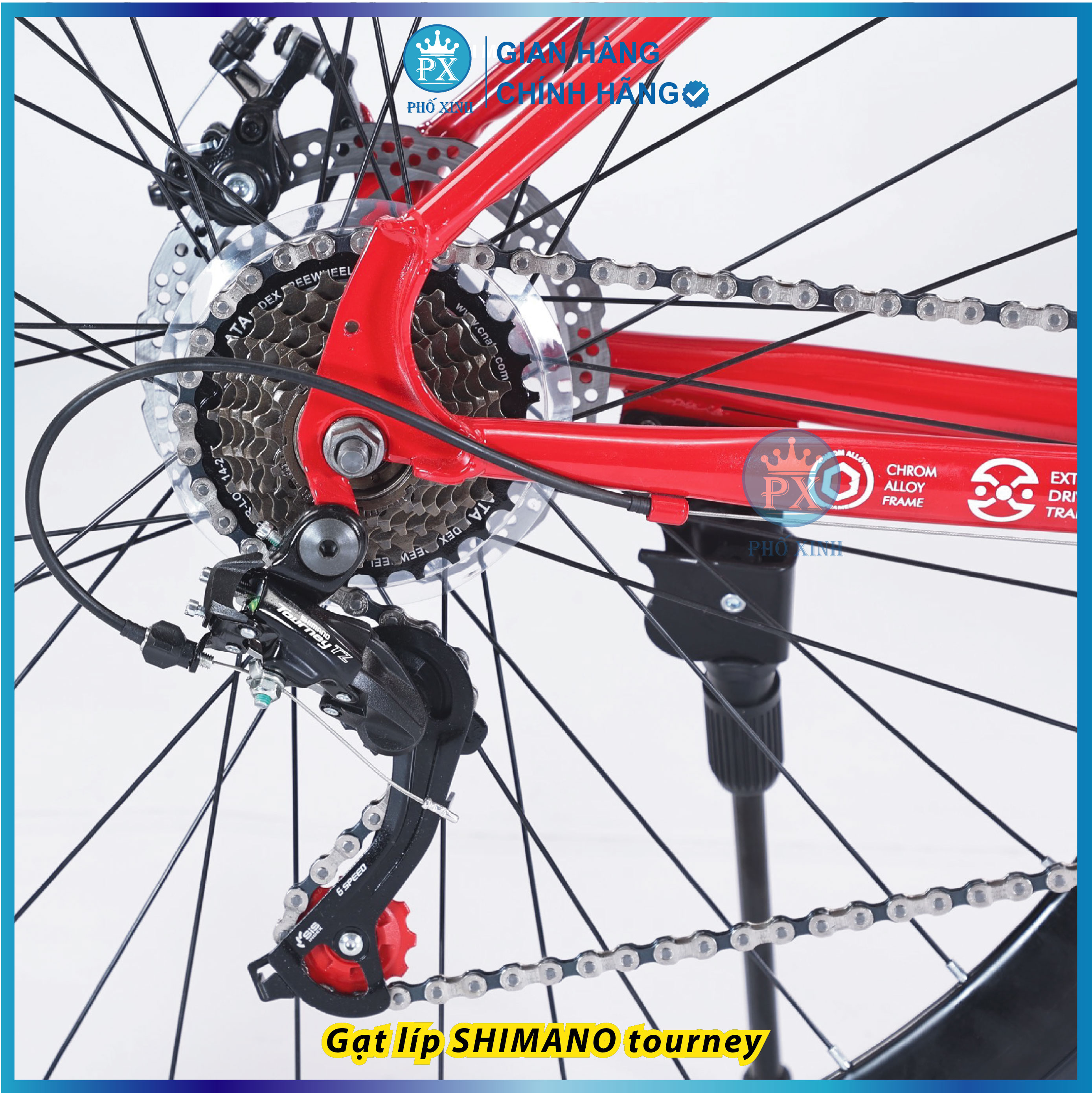 Ghi đông CATANI được uốn công nhẹ, tạo tư tế lái thoải mái nhất. Các chi tiết chữ nổi sử dụng công nghệ laser.Bộ truyền động S H I M A NO tourney lên đến 21 tốc độ, gồm 3 dĩa 7 líp. Cho bạn dễ dàng tăng tốc, trợ thủ đắc lực đồng hành cùng bạn. Đùi dĩa CATANI chất liệu thép hợp kim chắc chắn.Hệ thống thắng đĩa cơ, đảm bảo an toàn trên tất cả mọi nẻo đường.