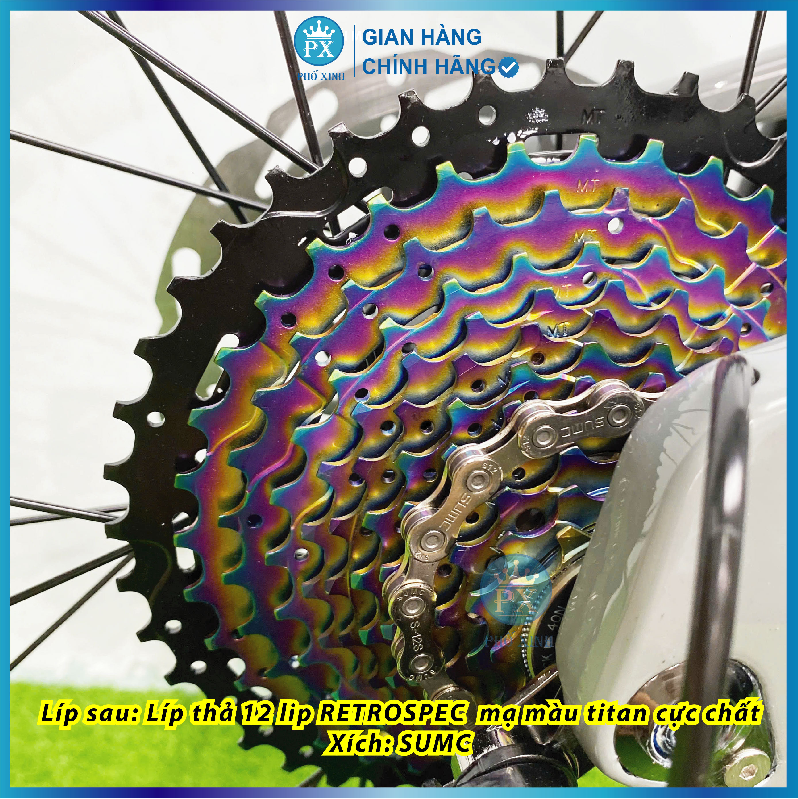 Thông số kỹ thuật Đối tượng sử dụng: Người lớn Chiều cao phù hợp: 150cm - 175cm Khung xe: Thép Phuộc: Thép Đùi đĩa: Nhôm Phanh: Phanh vành trước, phanh tăng bua sau Size :