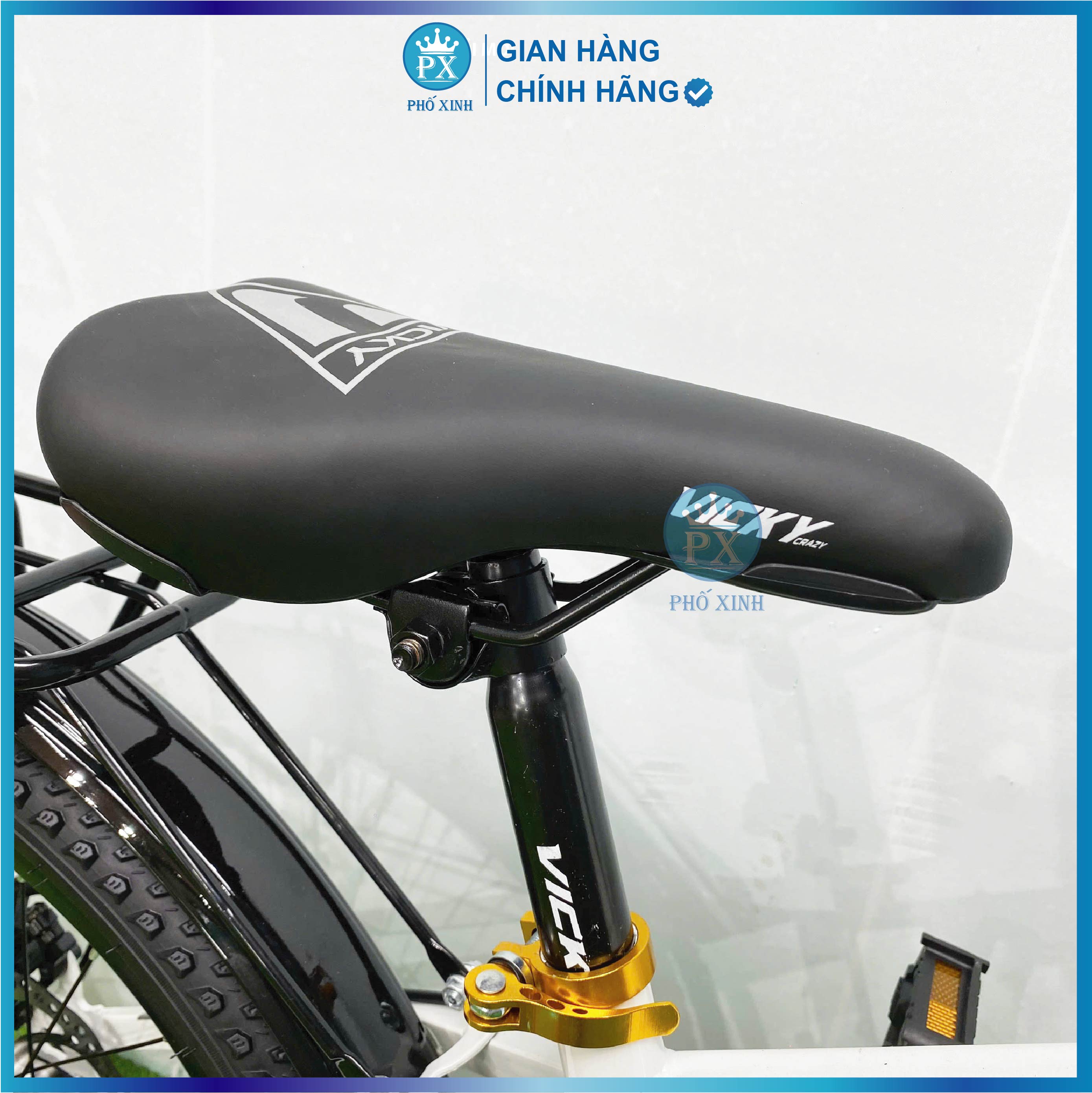 Xe mini 1 dóng bánh 22 - Mã VM22 - Khung thép - Sơn Tĩnh điện - Càng xe: Phuộc đơ - Yên xe: VICKY - Tem nước - Có giỏ + gọng giỏ +
