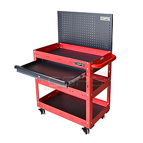✨Xe đẩy 3 tầng CSPS màu đỏ, vách lưới và hộc kéo màu đen