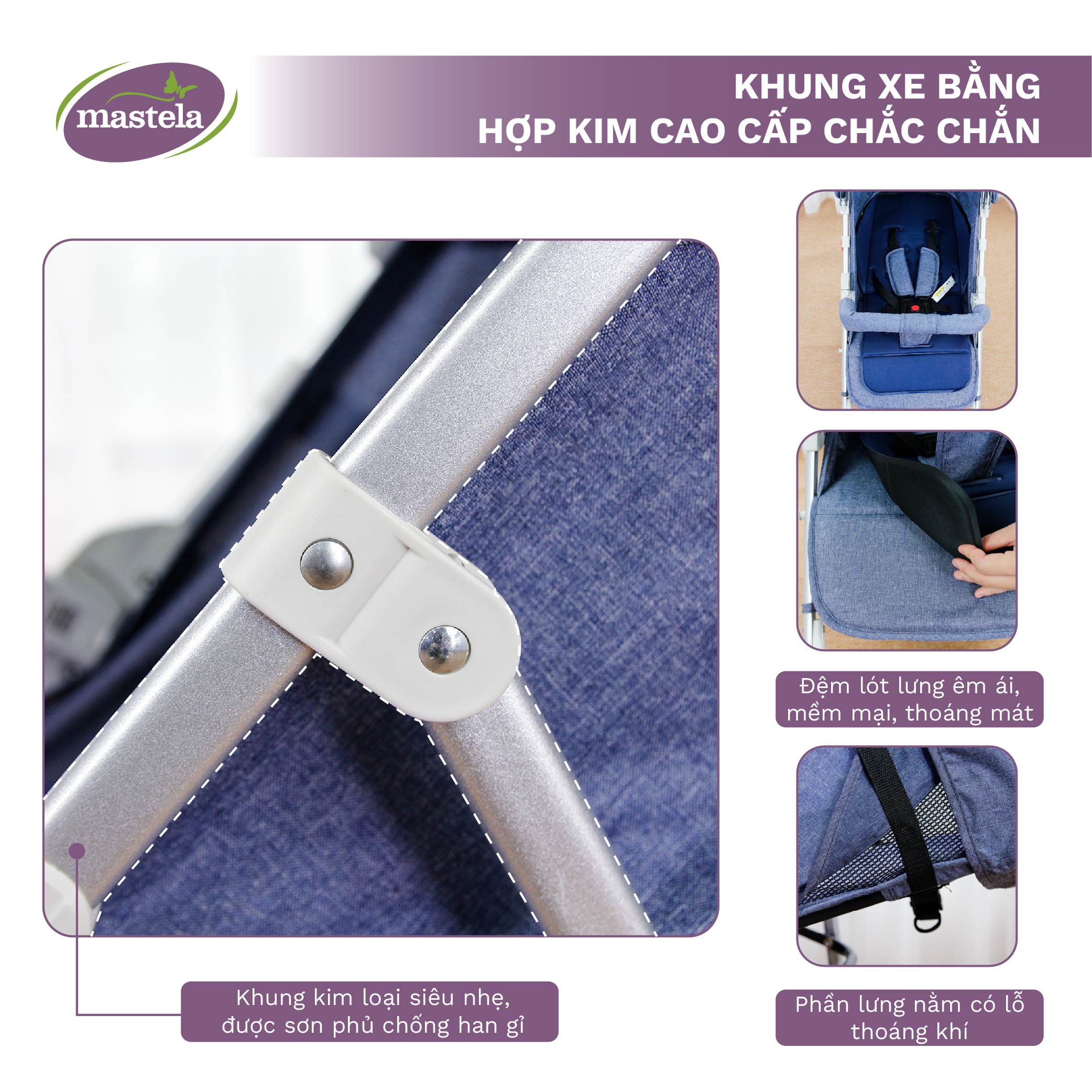 Xe đẩy du lịch Mastela A2 Khung Aluminum cao cấp siêu nhẹ, dễ dàng gấp gọn.