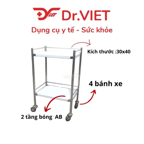 Mua tại TiktokXe đẩy 35x50, 2 tầng, 1 vòng thau là thiết bị y tế chuyên dụng được sử dụng rộng rãi trong các bệnh viện, phòng khám, cơ sở y tế để vận chuyển dụng cụ,