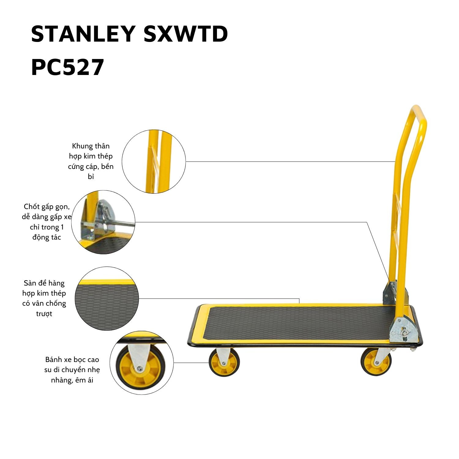 - Tên sản phẩm: Xe đẩy hàng 4 bánh gấp gọn Stanley PC527