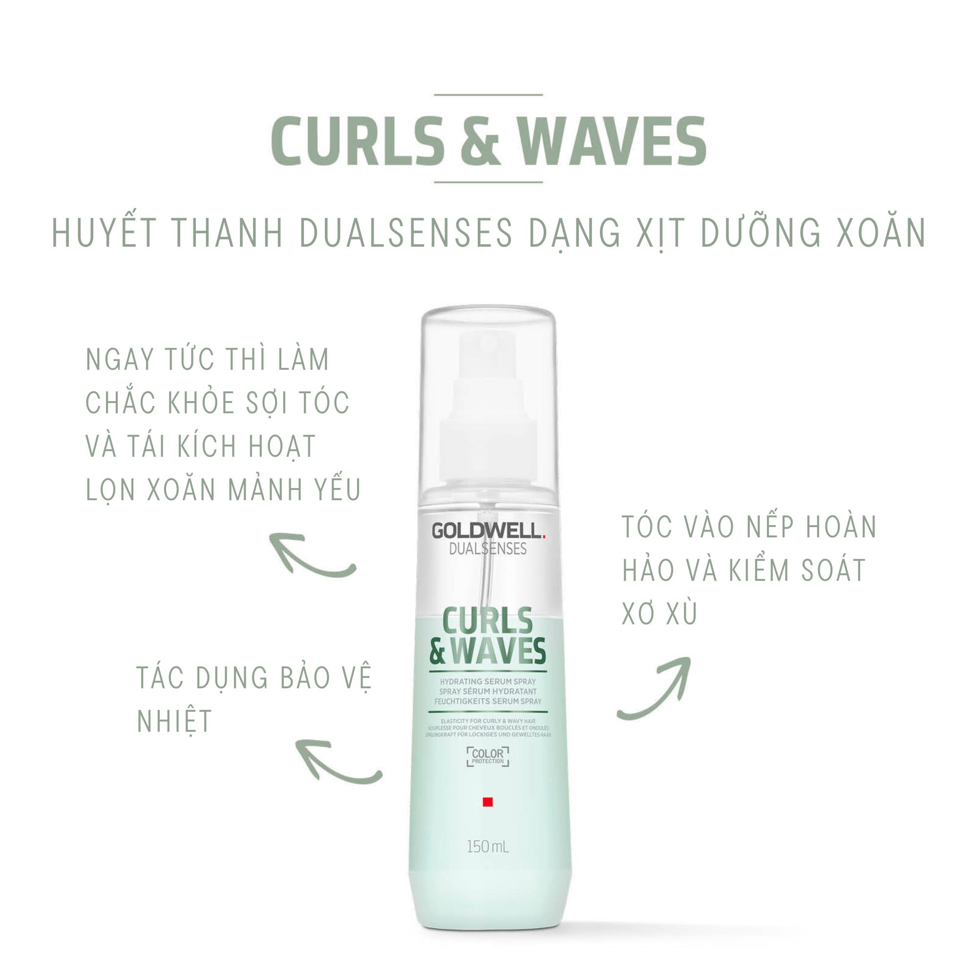 Xịt Dưỡng Xoăn Goldwell Curls & Waves Cấp Ẩm Chuyên Sâu, Tóc Bồng Bềnh Dễ Vào Nếp 150ml - Phù hợp với tình trạng tóc: + Tóc xoăn tự nhiên + Tóc uốn xoăn CÔNG