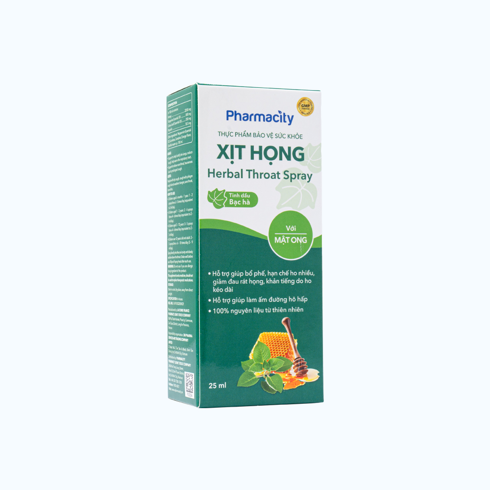 ✨Xịt họng thảo dược Pharmacity Herbal Throat Spray hỗ trợ giảm đau rát họng, khản tiếng (Chai 25ml)