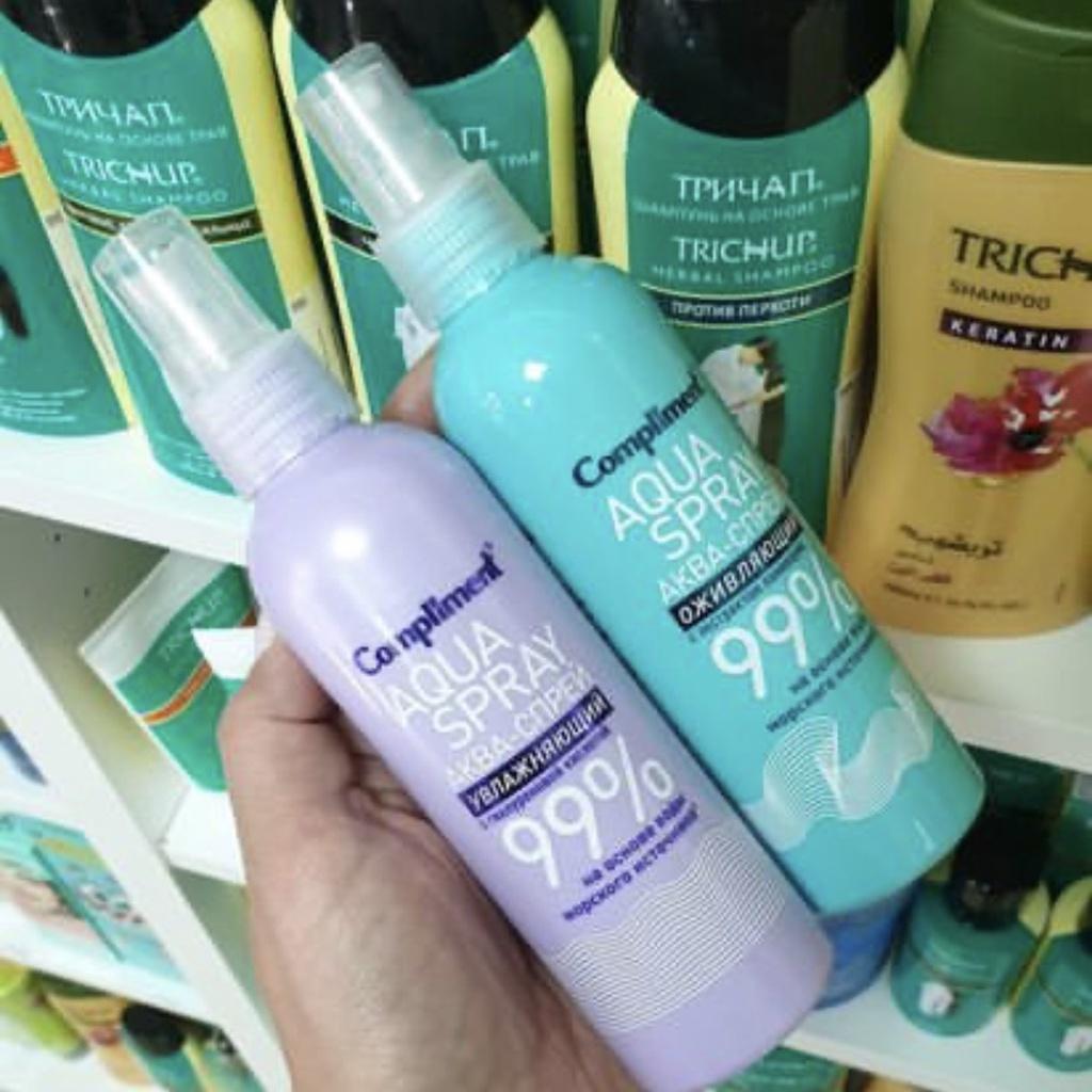 Xịt khoáng Aqua Spray Hyaluronic Acid - Compliment Chứa tới 99% nước khoáng tinh khiết (nằm ở độ sâu 22 mét trong khu vực sinh thái gần bán đảo Brittany, Pháp) nên rất giàu khoáng