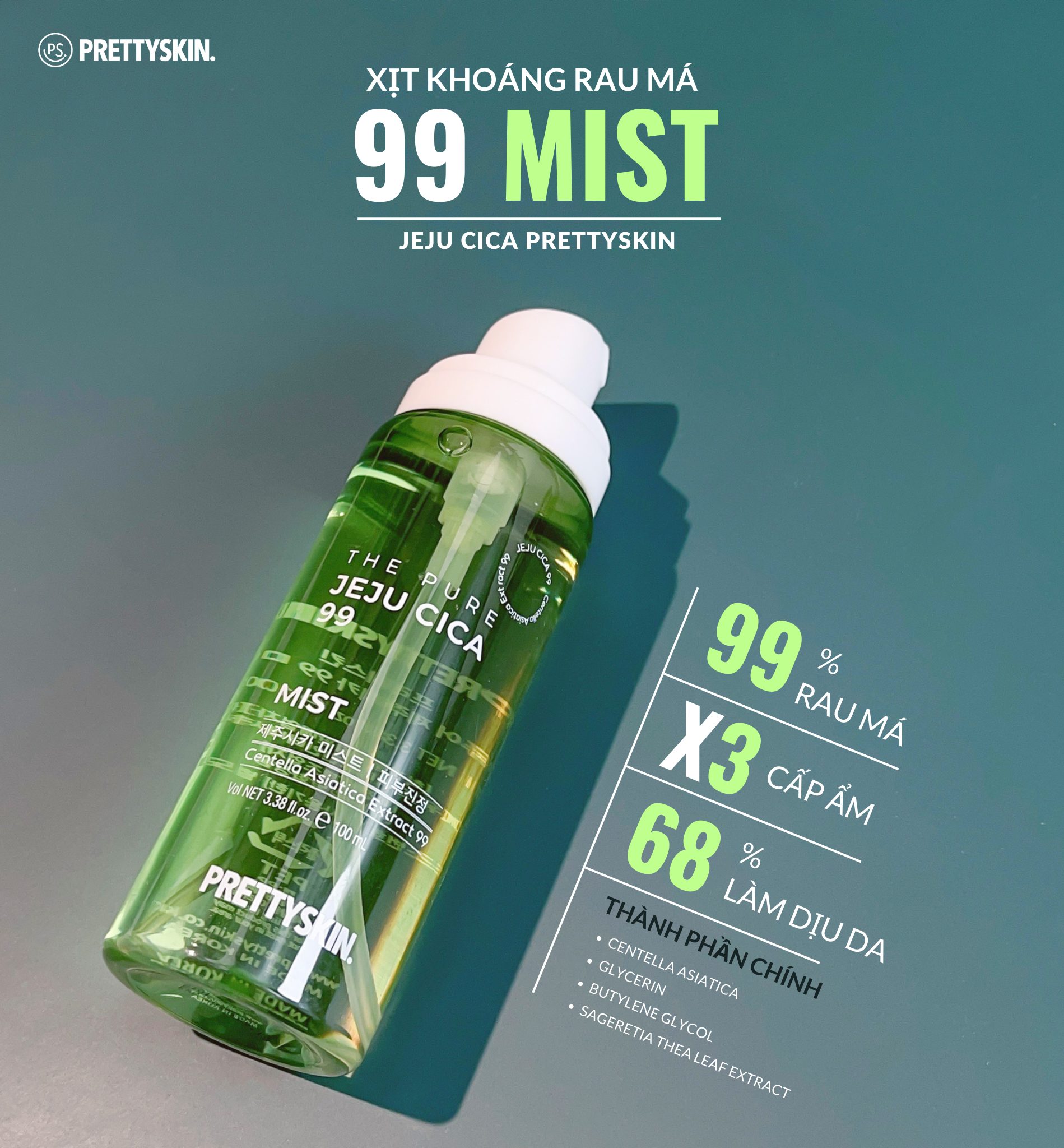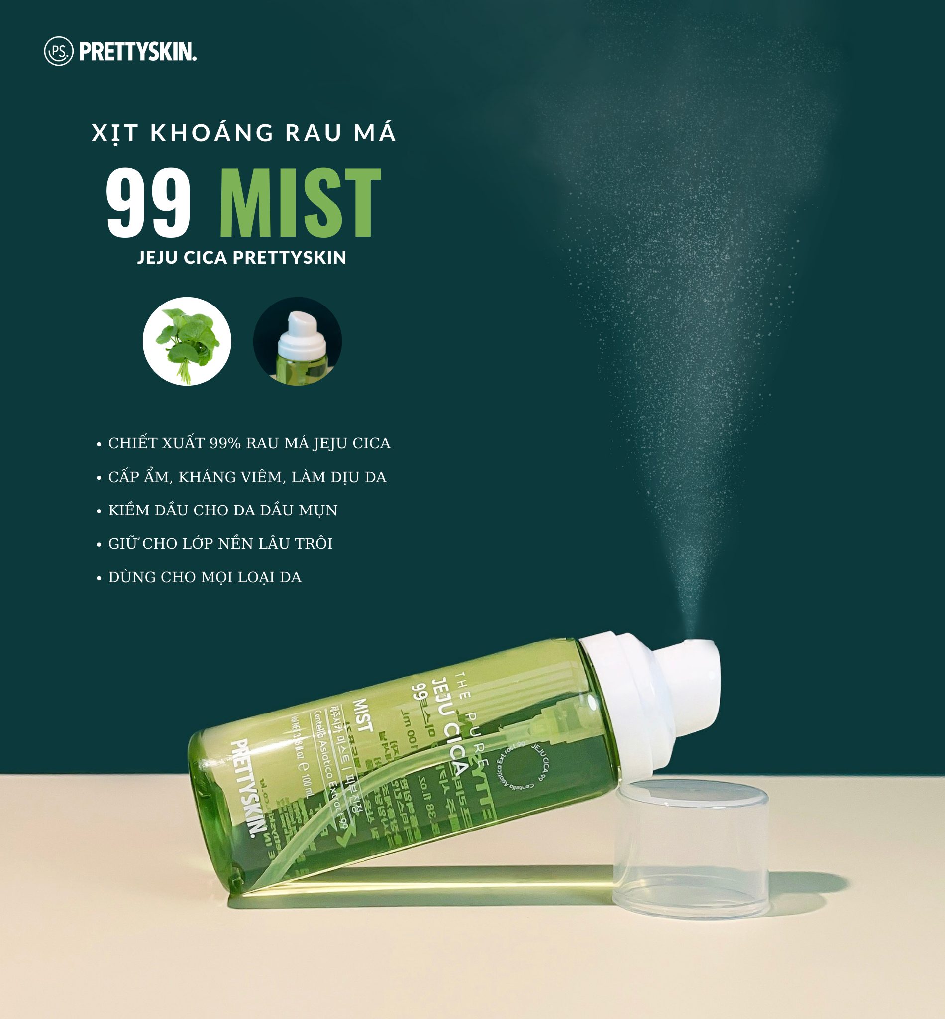 Xịt khoáng rau má Pretty Skin The Pure Jeju Cica 99 Mist 100ml REVIEW