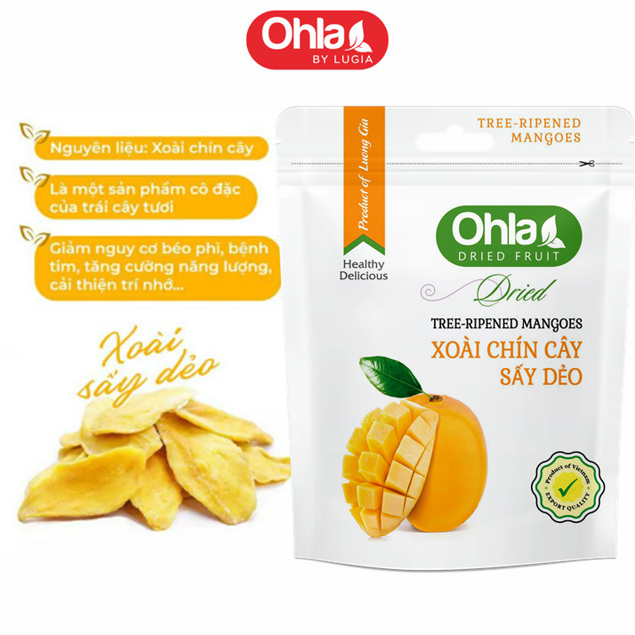 Xoài sấy dẻo Ohla là sản phẩm cô đặc của trái cây tươi, vẫn giữ được hương vị thơm ngon, màu sắc không khô cứng. Không chỉ đảm bảo đạt chuẩn an toàn vệ sinh thực phẩm, mà còn đảm bảo giữ được độ ẩm tự nhiên miếng xoài.