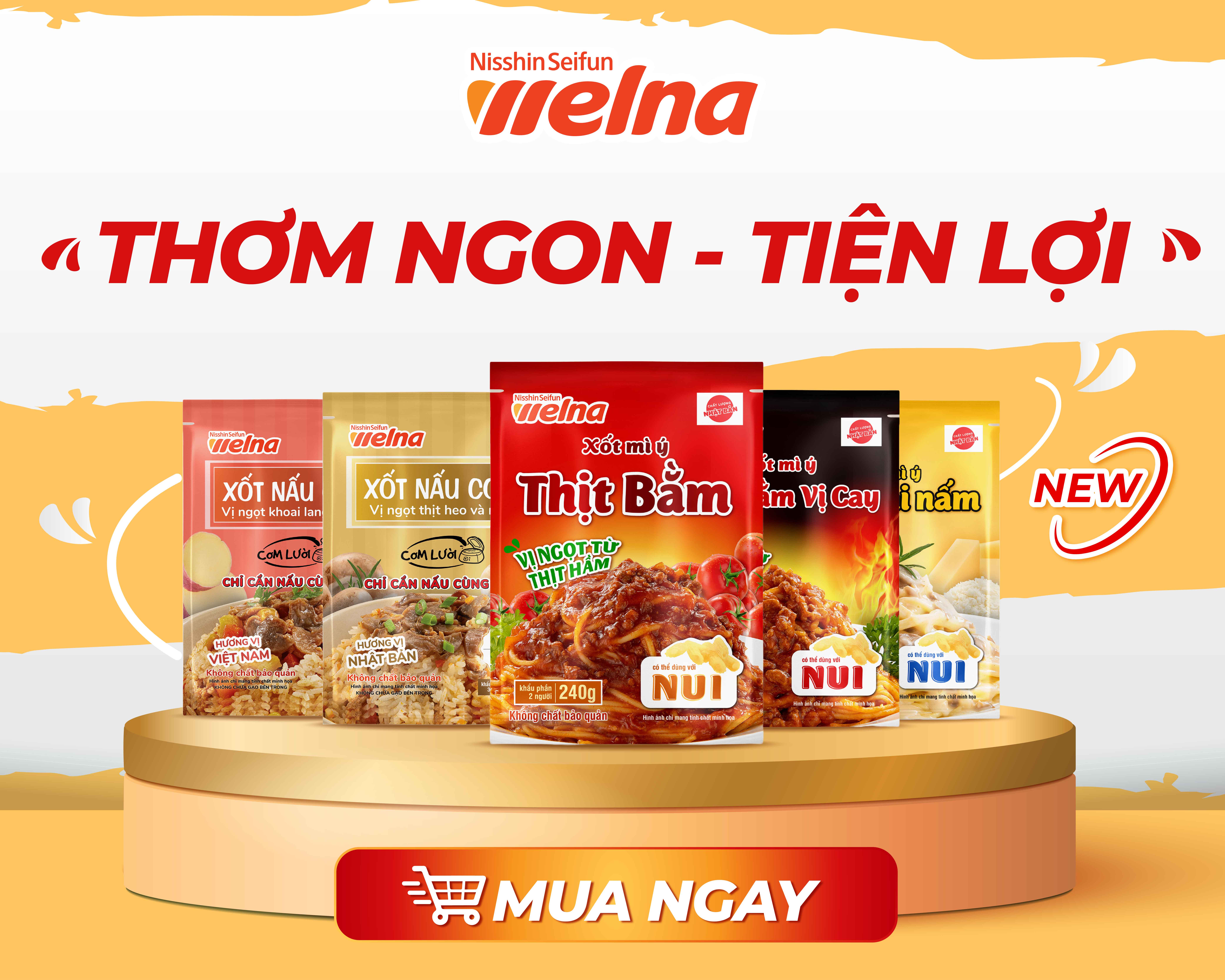 Thông tin thương hiệu: Nisshin Seifun Welna Inc. là doanh nghiệp Nhật Bản chuyên cung cấp các sản phẩm chế biến thứ cấp từ lúa mì, bao gồm bột trộn sẵn, mì ống, Xốt mì Ý và mì Ý, … Kể từ những ngày đầu thành lập, Nisshin đã và đang xây dựng niềm tin từ người tiêu dùng với triết lý chỉ đạo của mình là “Nền tảng kinh doanh được xây dựng trên niềm tin”.