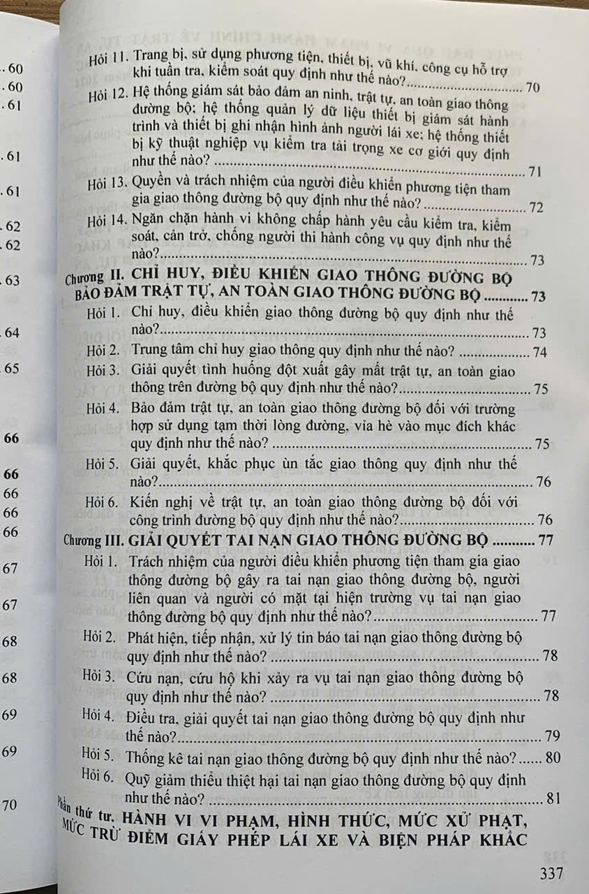 Phần thứ ba. HỎI ĐÁP VỀ TUẦN TRA, KIỂM SOÁT, CHỈ HUY, ĐIỀU KHIỂN GIAO THÔNG ĐƯỜNG BỘ BẢO ĐẢM TRẬT TỰ, AN TOÀN GIAO THÔNG ĐƯỜNG BỘ VÀ GIẢI QUYẾT TAI NẠN GIAO THÔNG ĐƯỜNG BỘ.