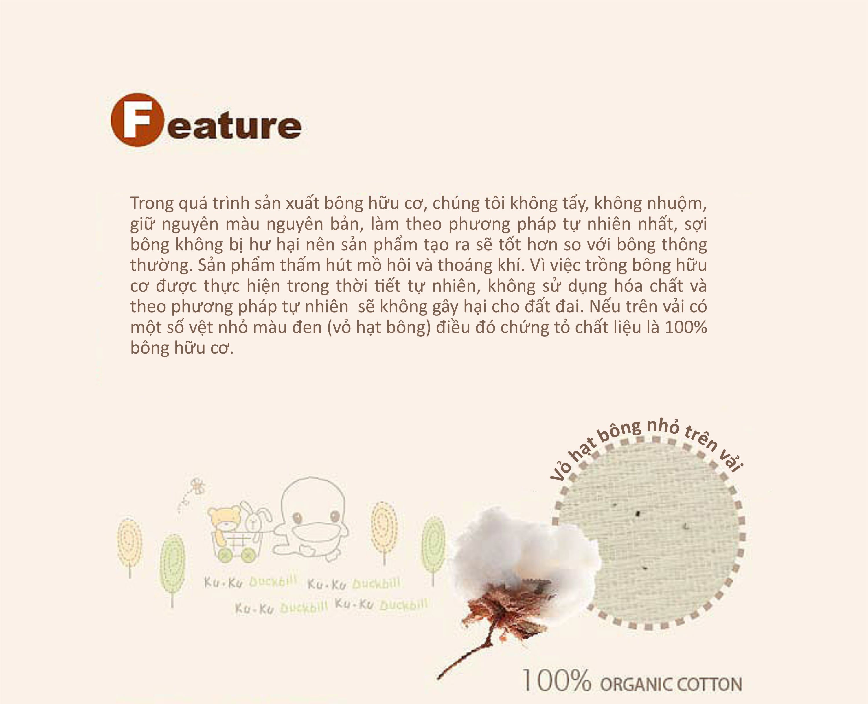 1. 100% cotton hữu cơ, không tẩy trắng, không nhuộm, không formaldehyde, bảo vệ làn da mỏng manh của bé. 2. Miếng dán được đính kết tinh xảo, không làm tổn thương da bé và