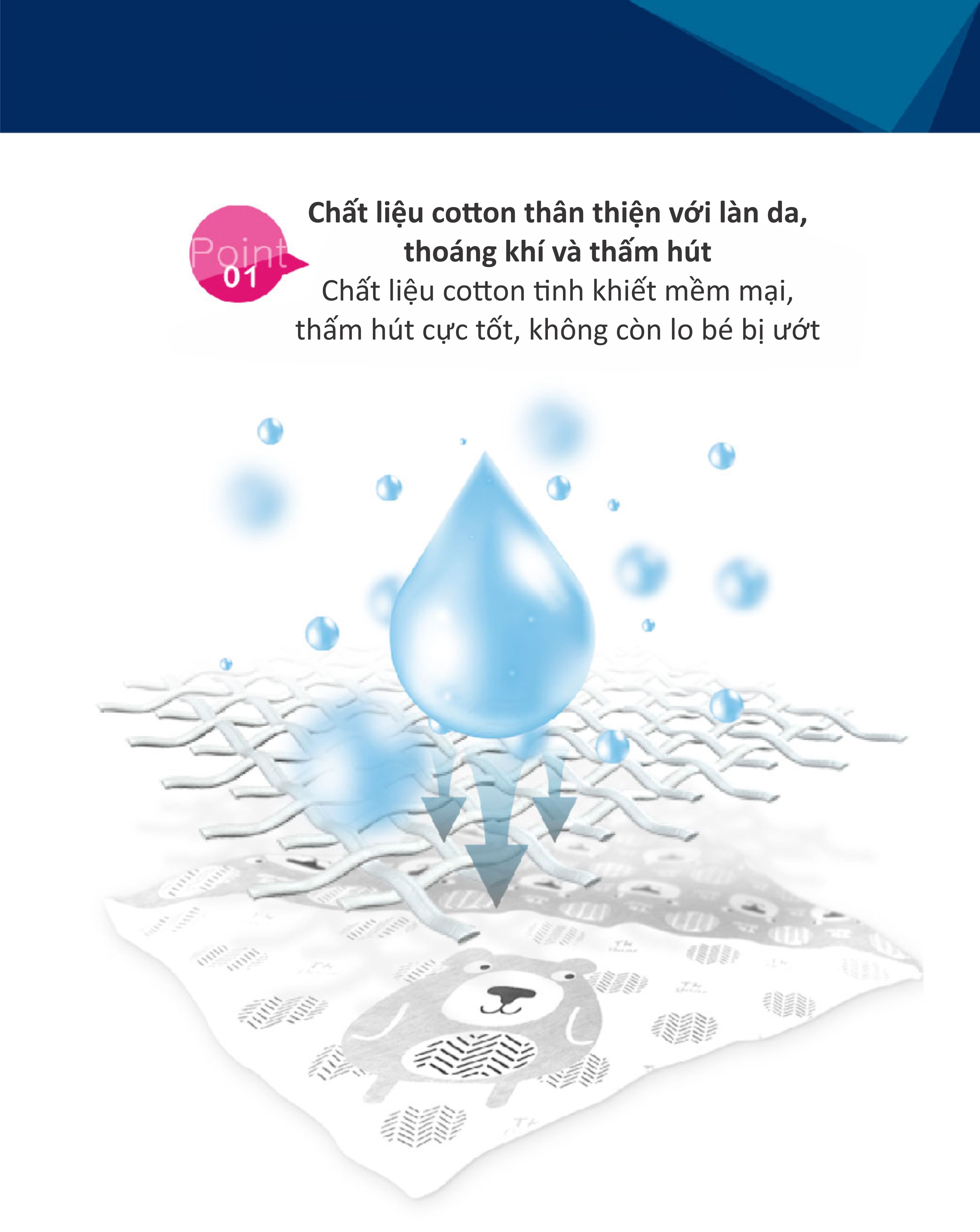 1. 100% cotton hữu cơ, không tẩy trắng, không nhuộm, không formaldehyde, bảo vệ làn da mỏng manh của bé. 2. Miếng dán được đính kết tinh xảo, không làm tổn thương da bé và