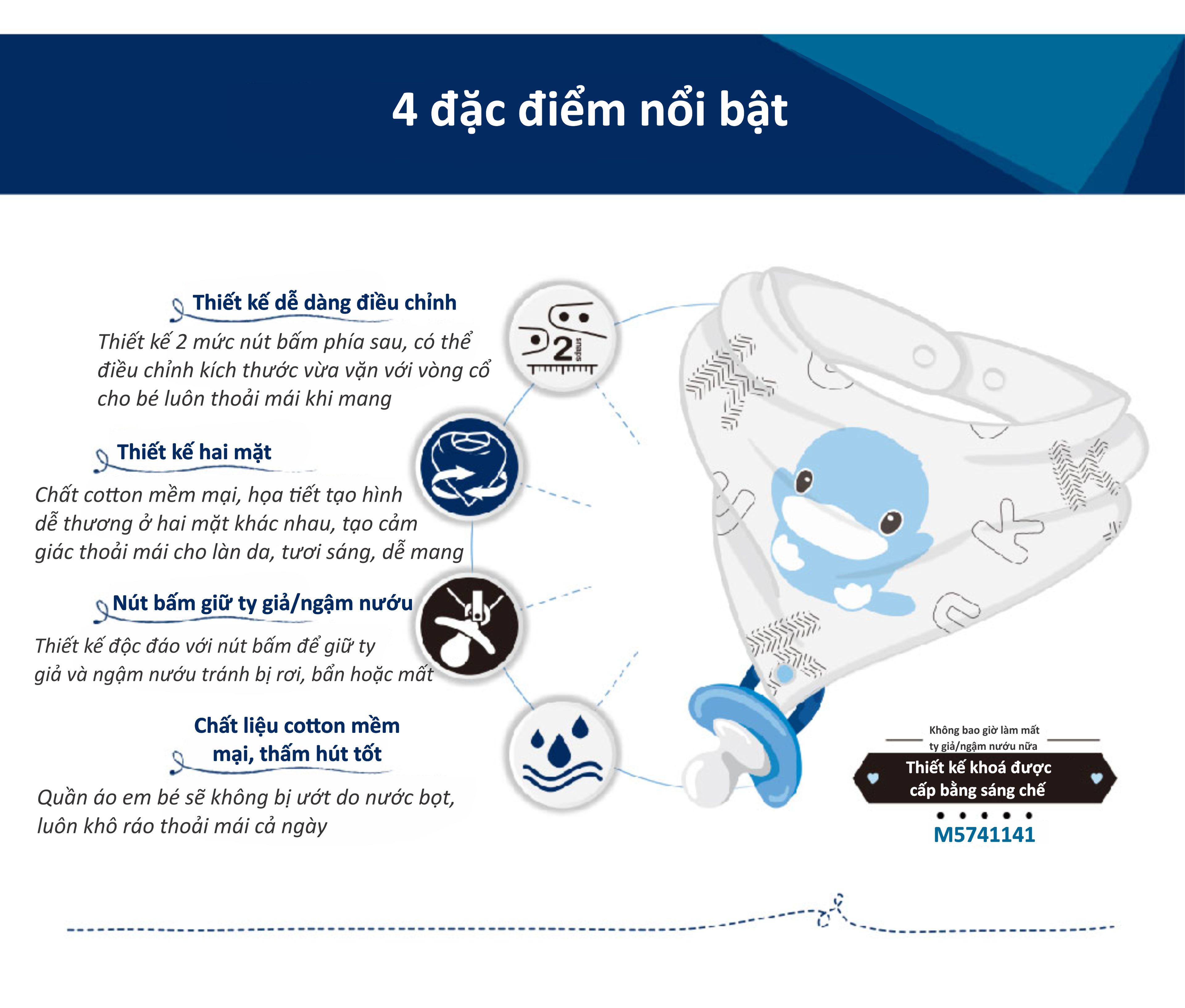 - Chất vải cotton mềm mịn, an toàn với thiết kế tạo hình dễ thương dùng được cả 2 mặt, vừa là yếm, vừa như phụ kiện thời trang sành điệu cho bé;