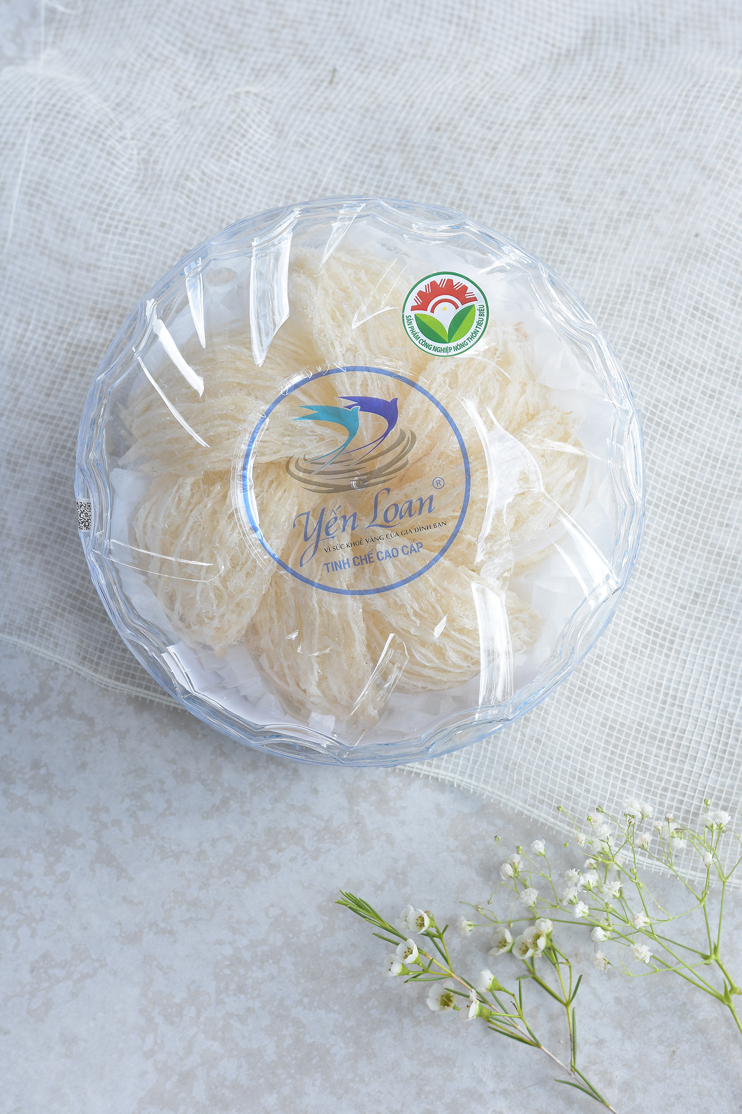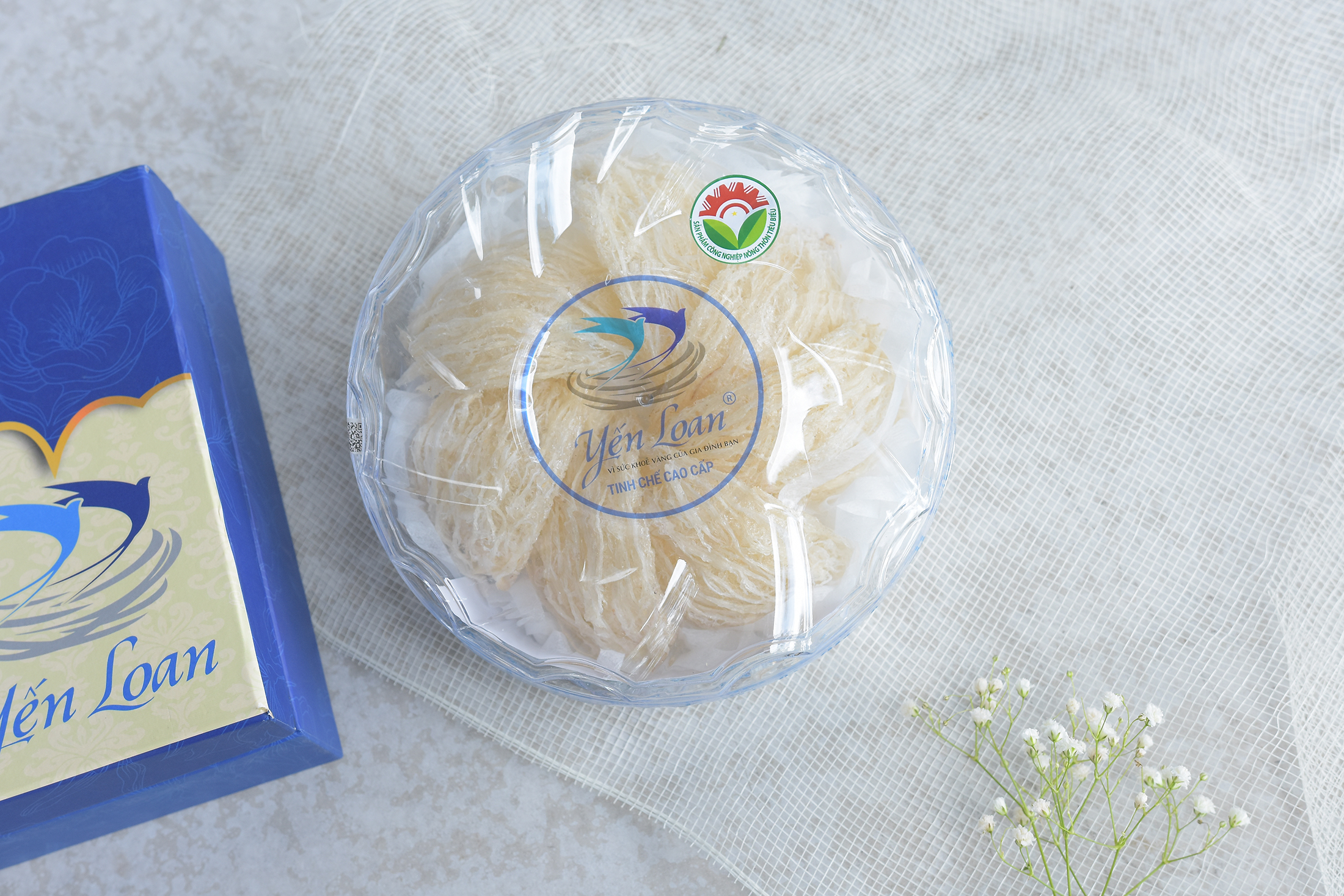 • Thành viên BCH Hiệp hội yến sào Việt Nam. Mô tả sản phẩm: Yến sào Yến Loan không tẩm đường, không pha trộn tạp chất, không sử dụng bất cứ hóa chất tẩy trắng hay tạo mùi trong quá trình làm sạch. Nguyên liệu là những tổ yến cao cấp gồm những tổ to nhưng hơi nhiều lông. Tổ yến sau khi khai thác được người thợ Yến Loan rửa sạch với nước đã xử lý khử trùng qua tia cực tím, loại bỏ lông yến và tạp chất bằng phương pháp nhặt khô thủ công, đảm bảo giữ được tối đa các khoáng chất có trong tổ yến. Thành phẩm là những tổ yến to, nhiều sợi yến to và dài được nhiều người sành ăn ưa chuộng. Công dụng: